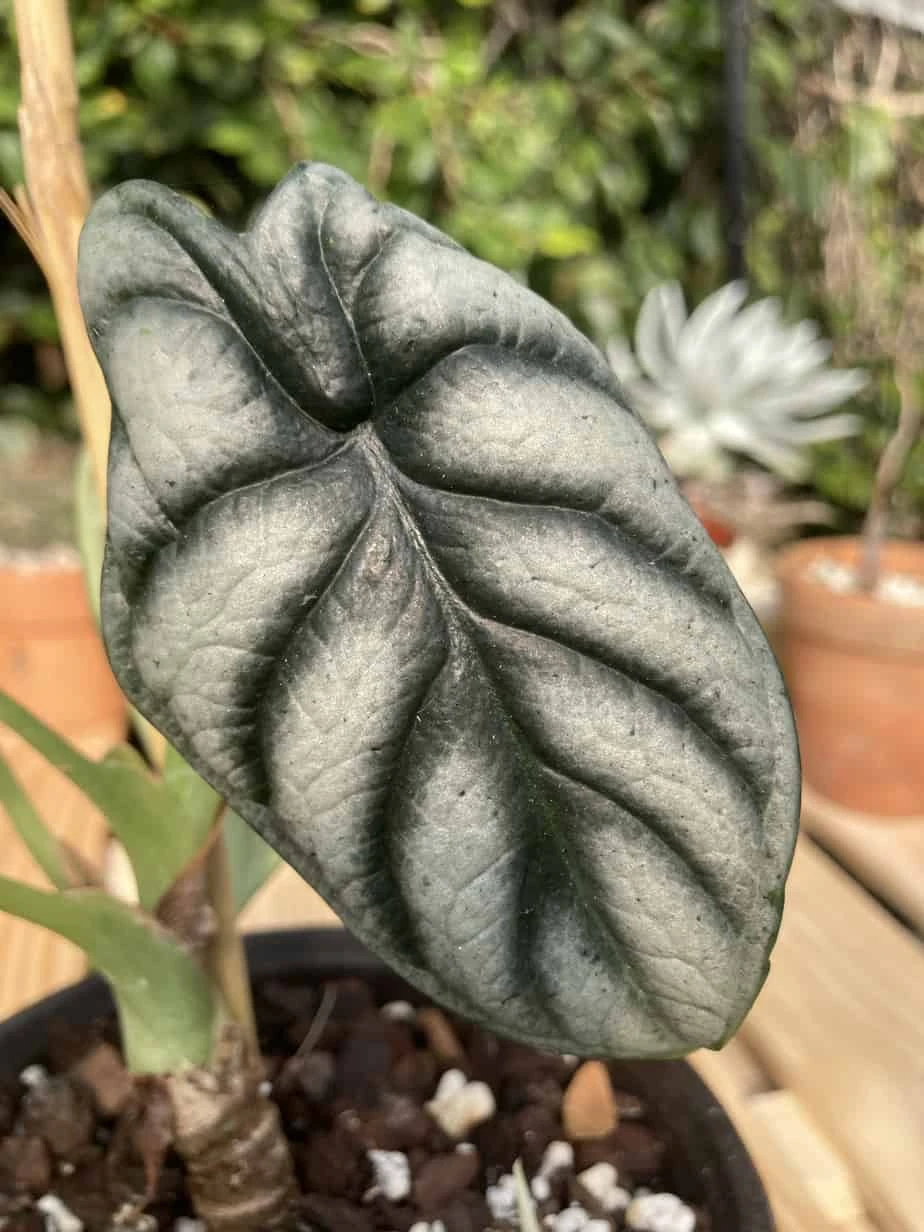 - A member of the jewel alocasias, this lush and armored species stays much more compact that its larger relatives, making it more appealing as a household plant.