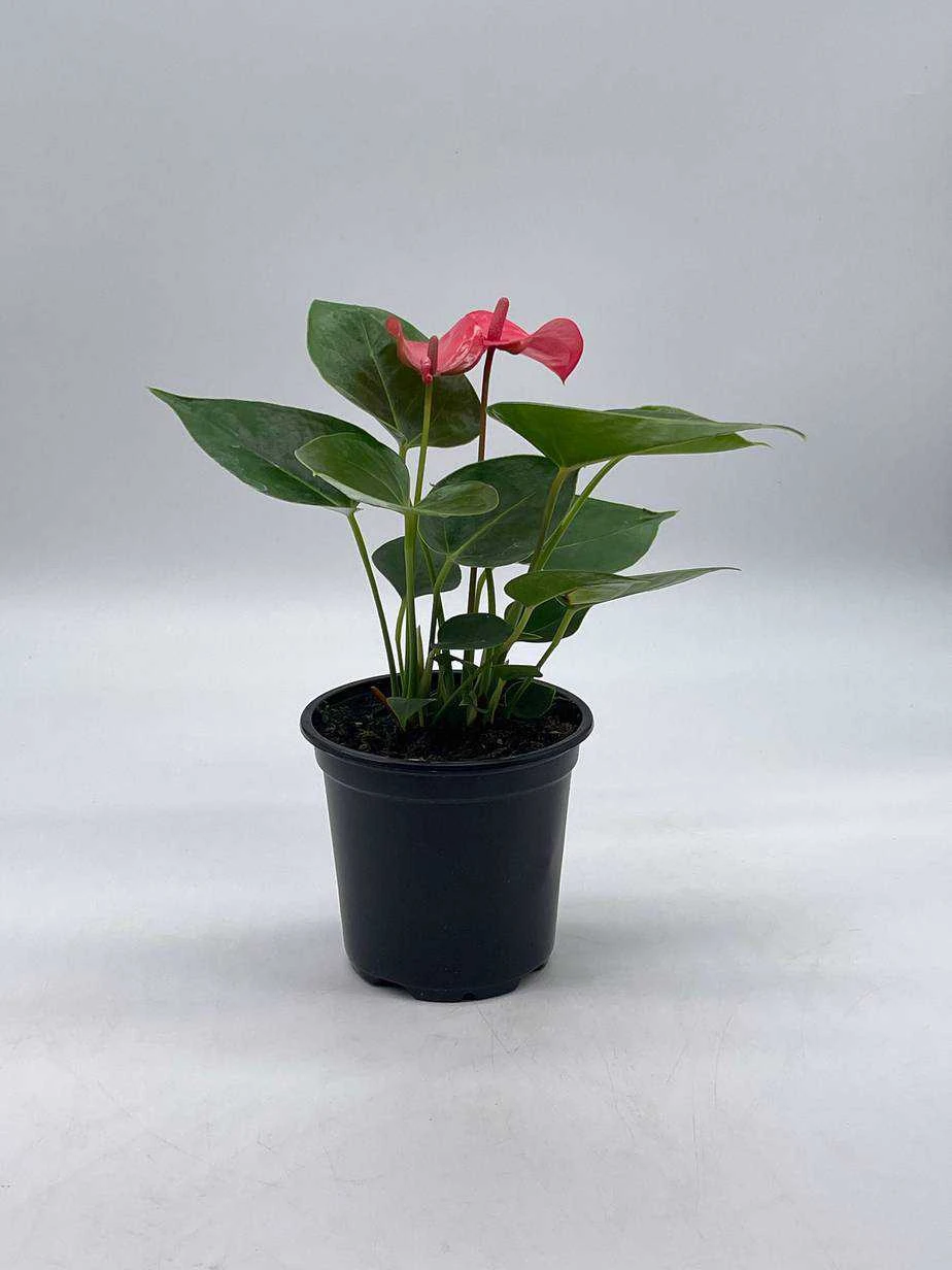 Anthurium Pink, Flamingo Lily, andraeanum Linden ex André painter’s palette in 4 inch pot, very full healthy