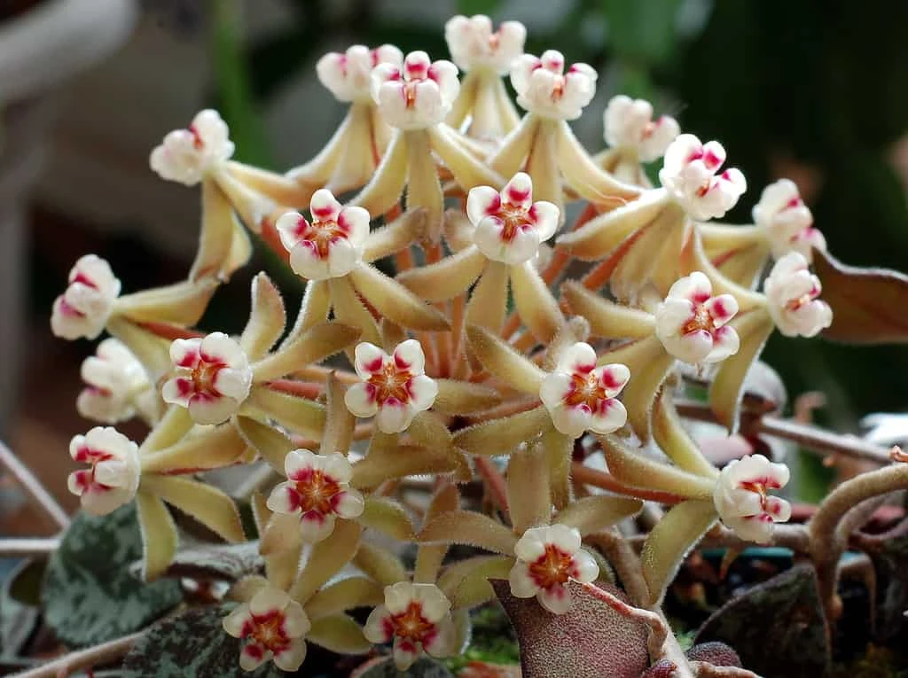 Expect flowering to occur during the warmer months of the year from October right through to April. Hoyas produce flowers from peduncles protruding from the same stem junction every year, so it is important not to cut the flowers off after they finish flowering. They will drop off on their own. BLOOM PROCESS: Hoyas like lots of sun, but direct beams can give their leaves a sunburn. A bright, north or east-facing window is a fantastic spot for your plant. Alternatively, a south or west-facing window with a sheer curtain will help soften those intense light beams. Some plants don’t like being root-bound, but if your hoya is snug in its container, this will actually encourage flowering! Don’t Over-Fertilize. Fertilizer containing phosphorus is essential for your plants to go through their bloom cycle, but too much can stress out your plant and throw them off course. A balanced, slow-release fertilizer in spring and summer will work great for properly fueling your plant. Don’t fertilize in fall or winter—your plant needs a chance to rest and recharge before its next spring growth spurt. WATERING: Allow your Hoya curtisii to go about 3/4 of the way dry before watering. Allowing Hoya to go too dry for too long can lead to roots dying off, so don’t let your Hoya get too thirsty! Whenever you water make sure you are giving a thorough drink and fully saturating all of the soil.