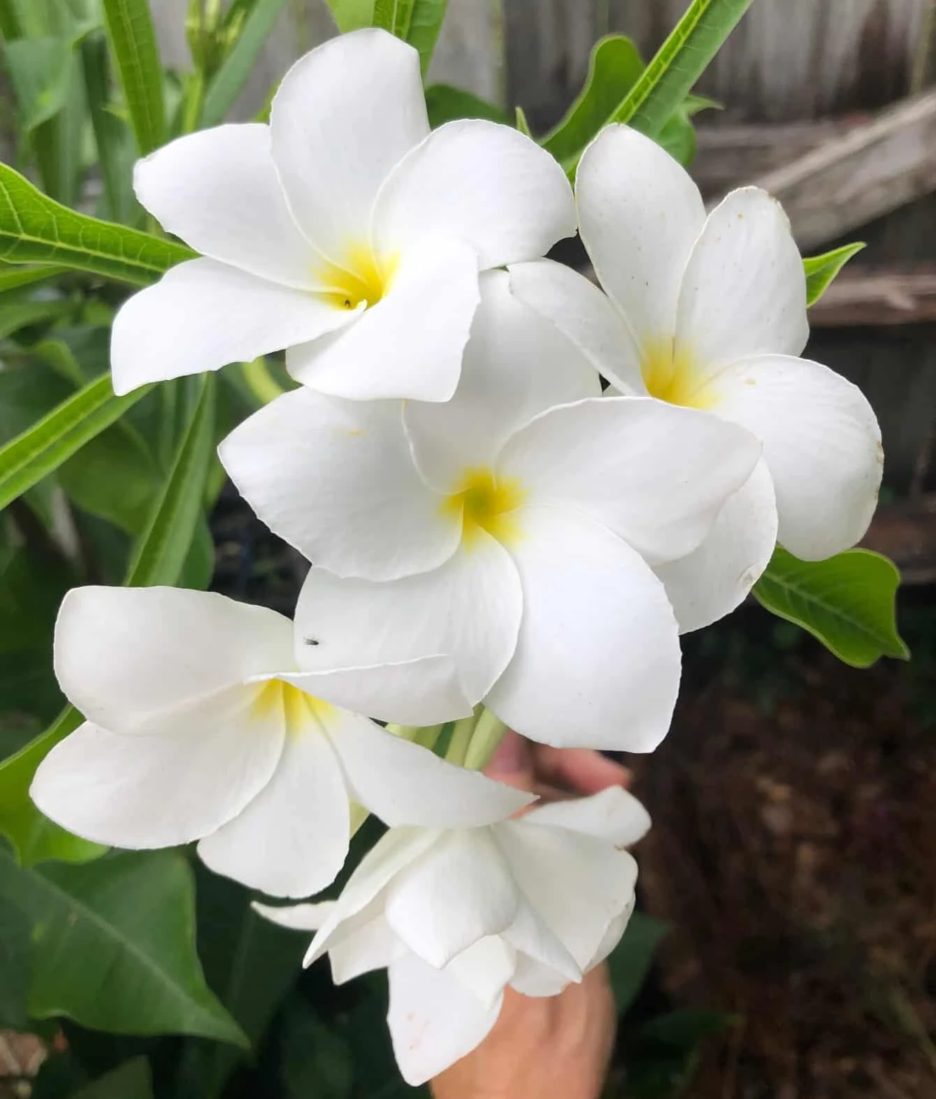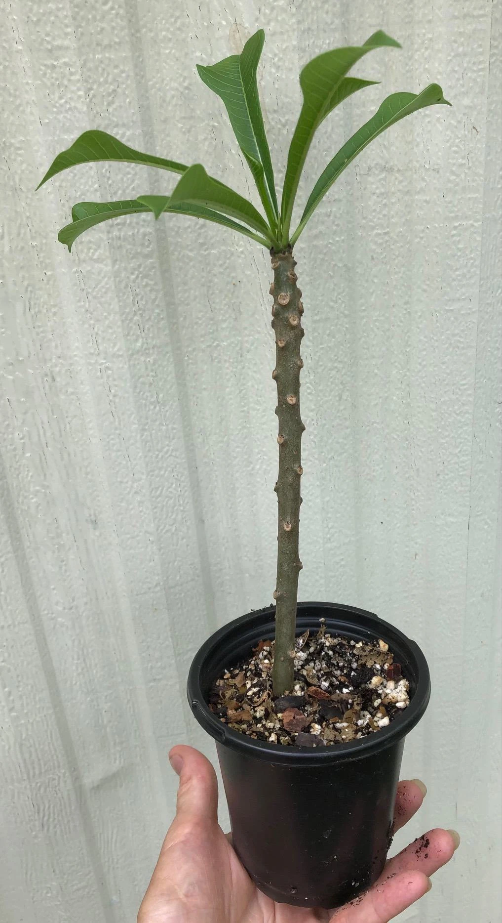 You will receive one LIVE Plumeria Pudica Bridal Bouquet Plant, potted in a 4 inches tall pot in soil. Ships in pot, well established plant.