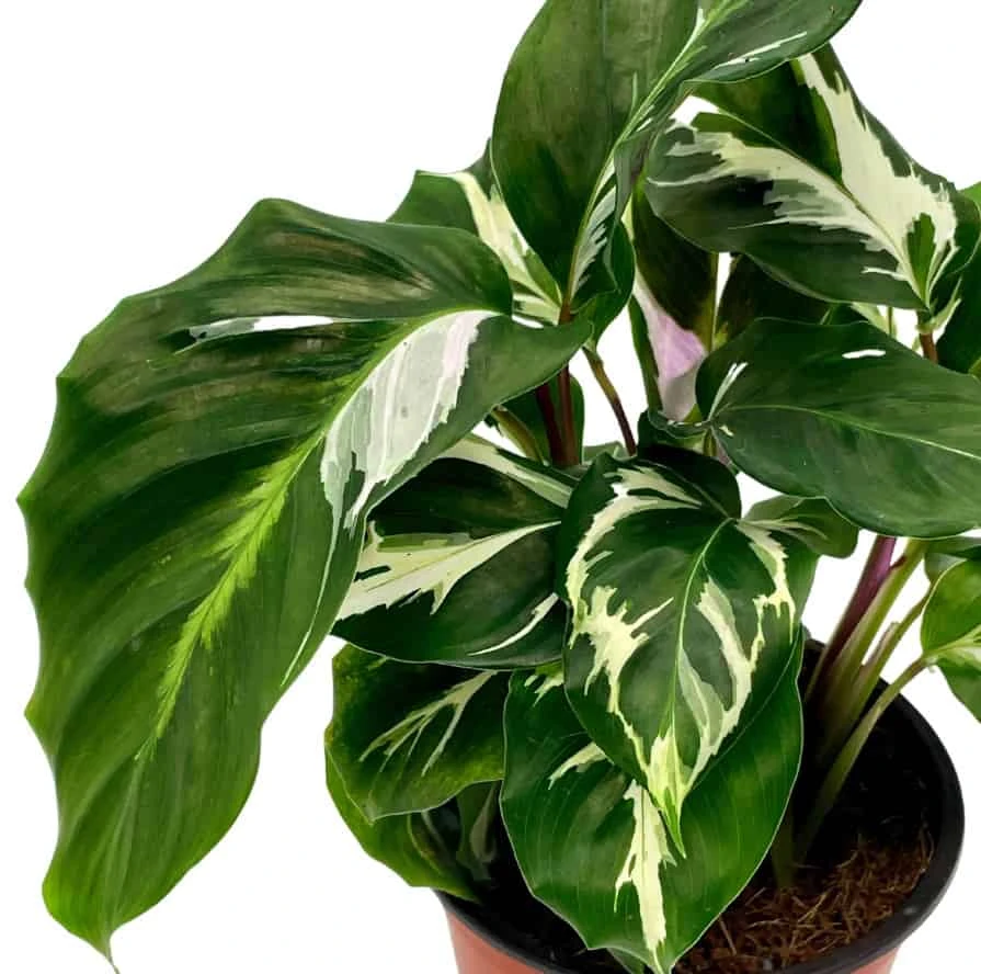 Calathea White Fusion, 4 inch, Rare Variegated Prayer Plant, Cathedral Plant, Green and White