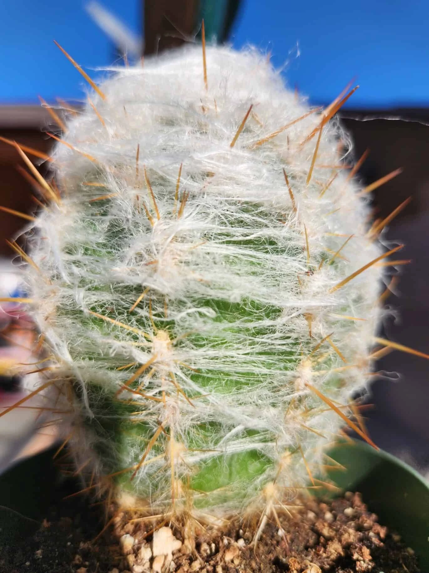 Color: Underneath the layer of spines, the cactus is typically green to grayish-green. The contrast between the white spines and the greenish body adds to its visual appeal.