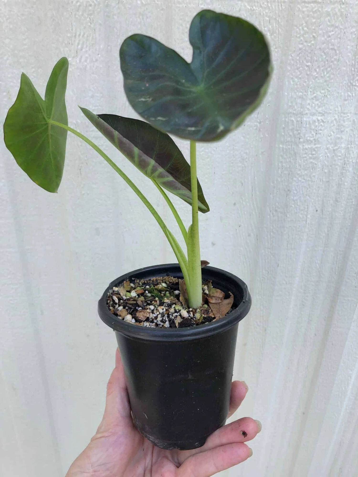 *Please note, colocasias naturally drop leaves often, especially under stress, but they replace them with new growth quickly. It is possible it may lose a leaf or two during shipment, but this DOES NOT mean it’s dead or dying. The tuberb is still healthy and will keep regrowing once adjusted to its new environment. They can be sensitive to quick change. Just a little patience and it will be growing strong in its new home.