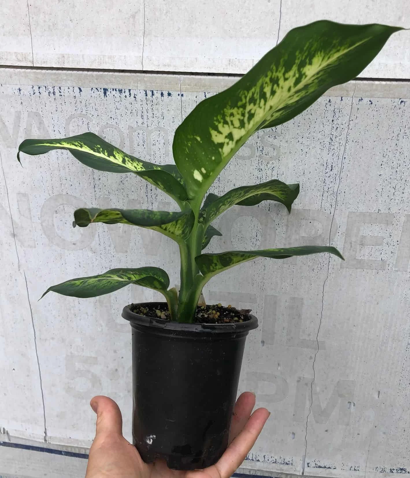 You will receive one LIVE Dieffenbachia Sublime Plant, potted in a 4 inches tall pot in soil. Ships in pot, well established plant, photos 2-3 show a mature plant, you will receive the plant showed on photos 4-6.