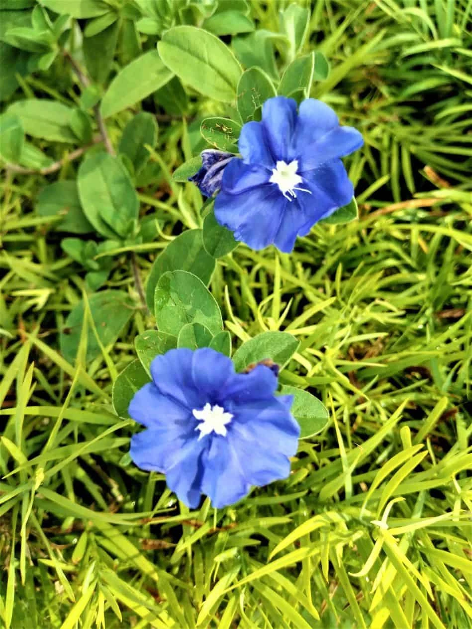 Product of Florida, USA, Organic No Pesticides applied. Read carefully before ordering. No refunds or exchanges. If damaged on delivery we need 4 photos of plant and packaging upon arrival. We do NOT ship plastic pots that are harmful to our planet. Your plant will arrive in biodegradable florist wrappings. Evolvulus Creeper, Blooms all Summer long. Offer is for one plant started in a 4″ pot. The plant requires temps from 65-100 degrees, well drained soil full sun to part shade to really thrive. This finely textured, dense, rounded, low-growing plant eventually becomes a grey-green carpet-like cover accented with a profusion of clear blue flowers. It will drape pots, rock walls and hanging baskets. It thrives in areas where hard freezes are infrequent. Blue Daze makes an attractive ground cover with sky blue flowers against the foil of small, silvery-green leaves. Working well as an edging plant, Blue Daze will cascade over the side of a raised planter, container or hanging basket. Small trees are set off very nicely when planted in a bed of Blue Daze. The abundant, small flowers close in the afternoon. New ones open in the morning. Gar-Zen Botanical Designs is located in South Florida and is a Black and minority women owned business.