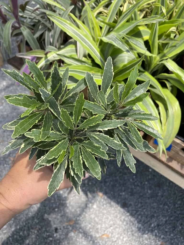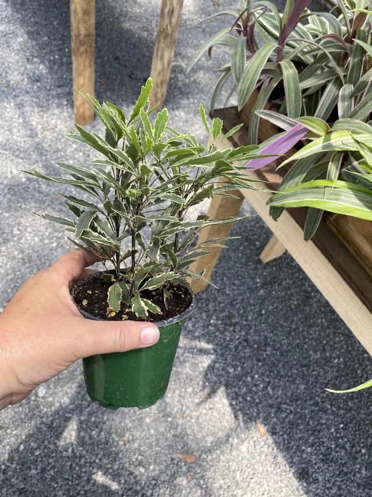 Botanical Name: Dizygotheca elegantissima Common Names: False Aralia Bianca, False Aralia Variegated Description: The False Aralia Bianca plant is a tropical evergreen shrub native to the Pacific Islands. It is known for its delicate, fern-like foliage and slender stems that can reach up to 10 feet in height in its natural habitat. The plant’s leaves are dark green and are composed of many small, thread-like leaflets that give it a feathery appearance. In indoor environments, the False Aralia Bianca plant usually grows to be around 3-6 feet tall and is often used as a decorative houseplant. It prefers bright, indirect light and consistent, moderate watering to thrive. The plant is popular for its striking foliage and easy maintenance, making it a great choice for adding a touch of tropical elegance to any indoor space. _____ This listing price is for one or each plant. We are a licensed plant dealer located in Middle Georgia. Our plants have great established root systems and come from reputable suppliers that provide true variety/species. Most plant(s) are shipped with a nursery pot, label and soil, however if the plant is larger we may remove some of the soil, wrap roots and trim the top to accommodate our boxes if needed. We are happy to combine shipping. If you purchase multiple items we will refund the difference in shipping cost when we process your order unless the item or order has free shipping offered. We pack plants with great care to ensure your order arrives as safely as possible, however we have no control of what may happen to the package in shipping once it leaves our location. We do not accept returns, however we gladly stand by our products and are willing to replace or refund your item(s) that are damaged during shipping. Please contact us with your questions or concerns. Thank you for stopping by ~ Follow Smoot’s Farms on other social media platforms!