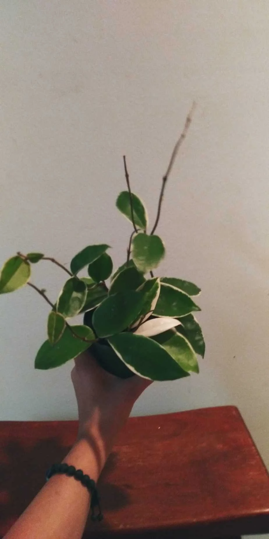 Beautiful hoya in a 4 inch pot. Long stems and some completely white leaves
