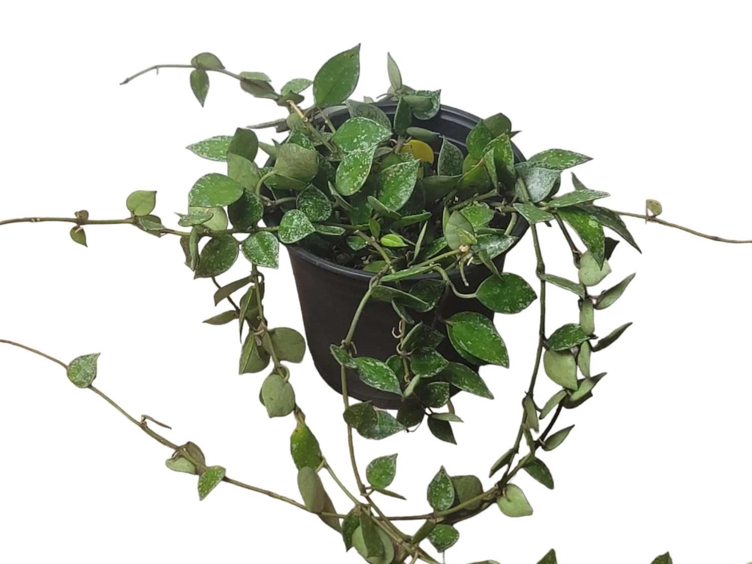 Hoya Krohniana Silver Splash is an easy to grow house plant. These plants prefer bright, indirect sunlight. Water once the first 2″ of soil has completely dried out. Hoyas are prone to mealy bugs and other common houseplant pests. Keeping an eye out for infestations and if needed using an organic pest control alternative will eliminate any issues. During the active growing season using a 1/4 strength fertilizer, specifically for house plants, will keep your plant happy and healthy!