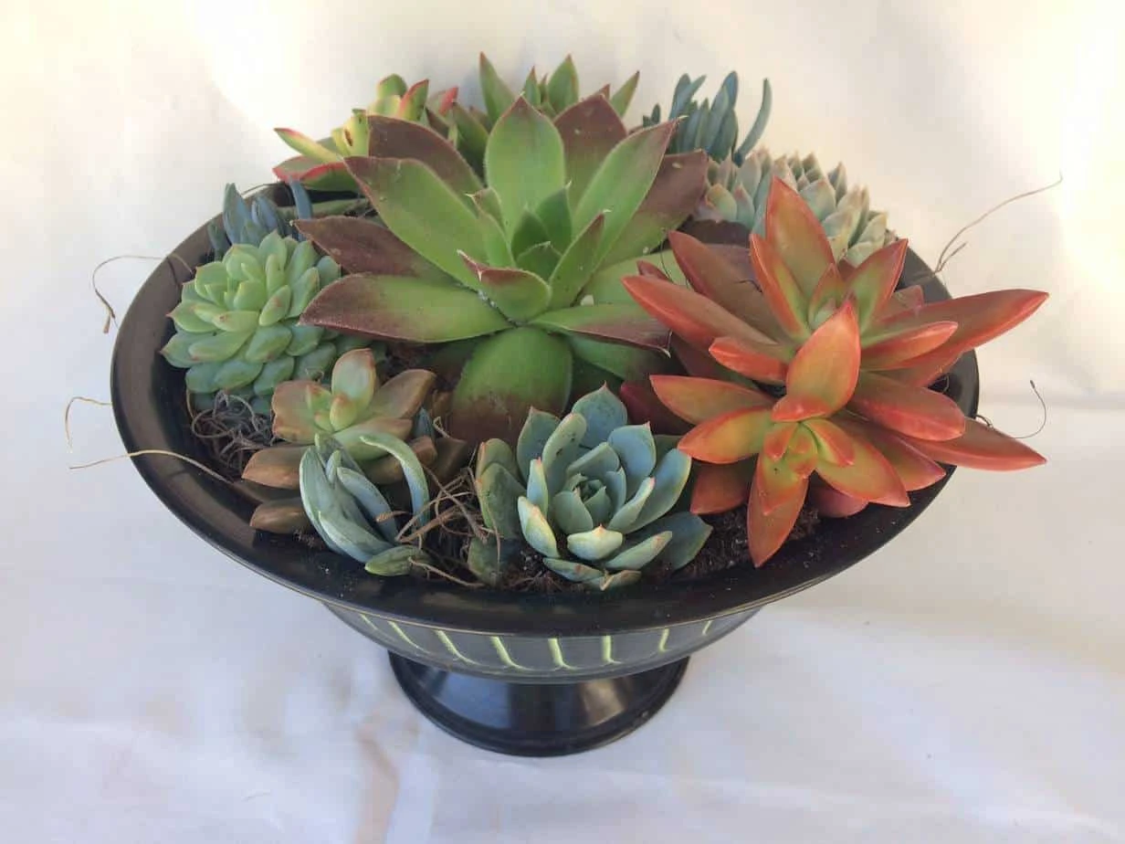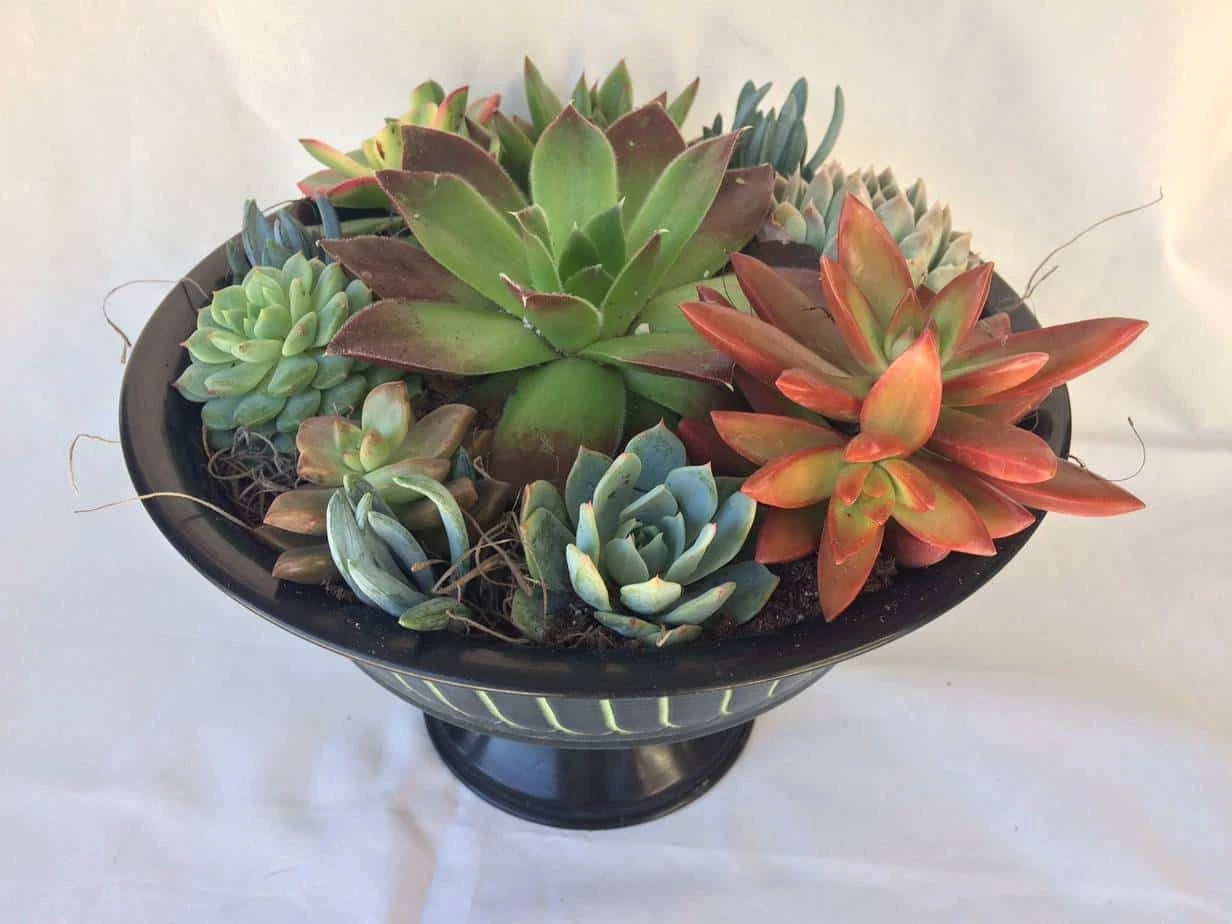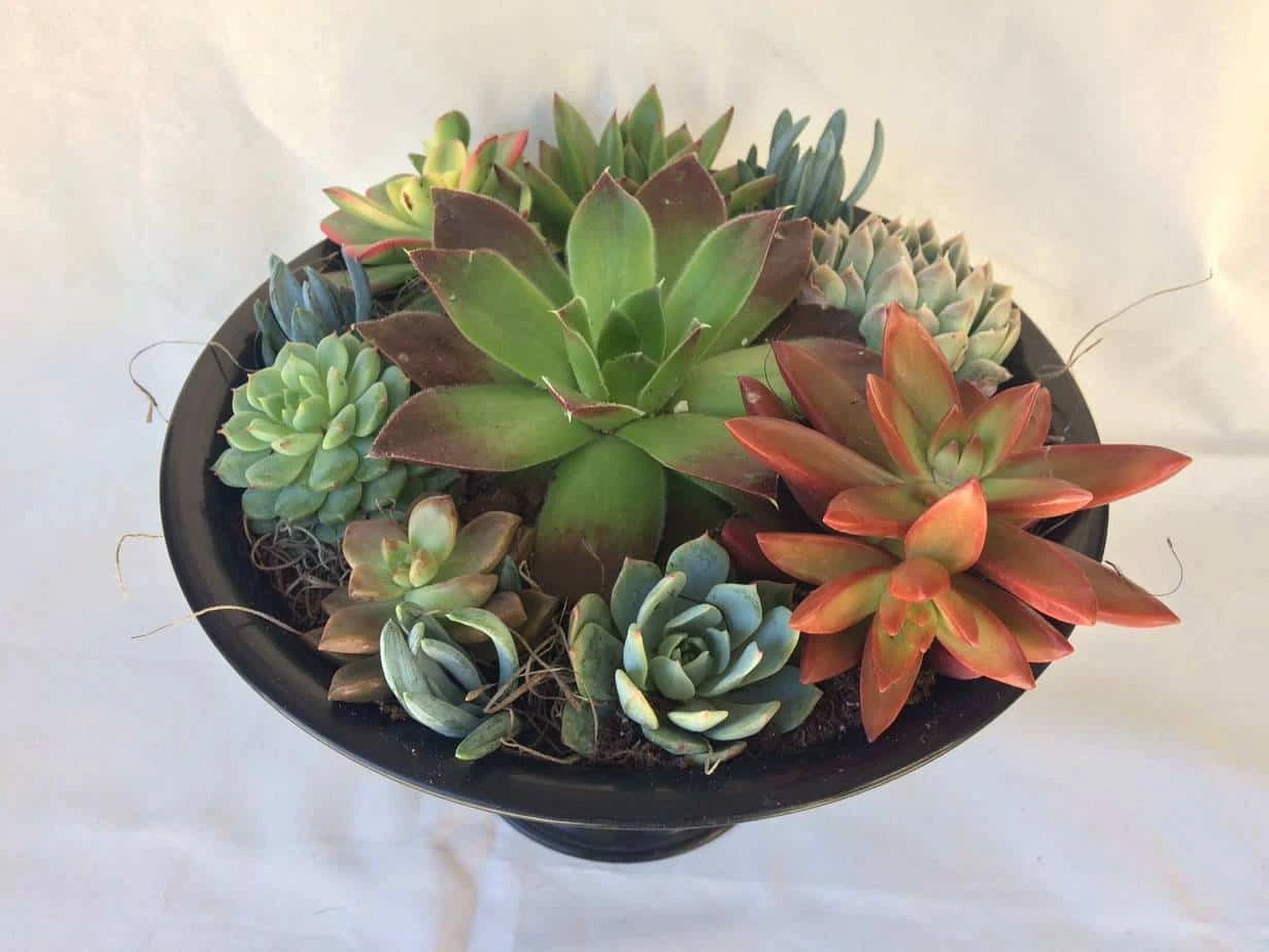You will receive one complete Black and Green, Round Pedestal Dish Garden, fully assembled. Plants will be as pictured or with slight variations depending on seasonal availability. It will be carefully wrapped for shipping and shipped via USPS Priority Mail.