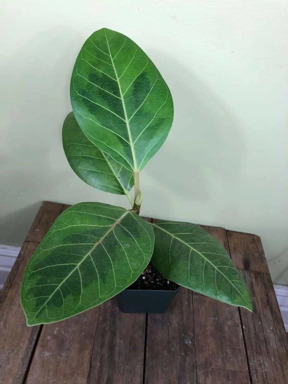 LIVE Ficus Altissima “Yellow Gem” variegated starter plant, pot size 4″ tall, potted with soil, well rooted young starter plant. You will receive 1 plant similar on the photos. An absolutely stunning indoor or patio plant in the ficus family with brilliant lemon and lime variegation. Ficus altissima cv. variegata.