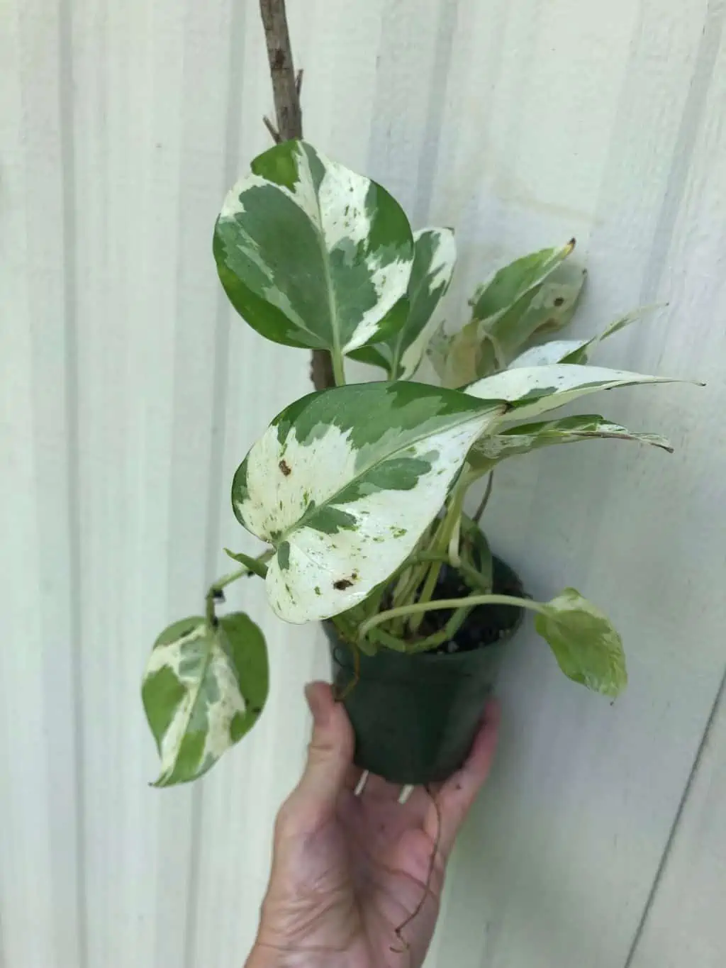 You will receive one LIVE ‘Pearls & Jade’ Pothos live plant potted in soil in 3″ or 4″ tall pot, Epipremnum aureum well established live plants, ships in pots with soil.