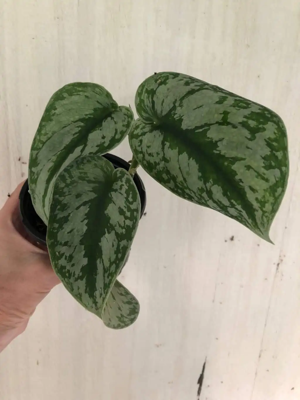 You will receive one LIVE Satin Pothos, Scindapsus Pictus ‘Exotica’ – Philodendron ‘Silver’, potted with soil in 4″ pot. Well rooted established plant.