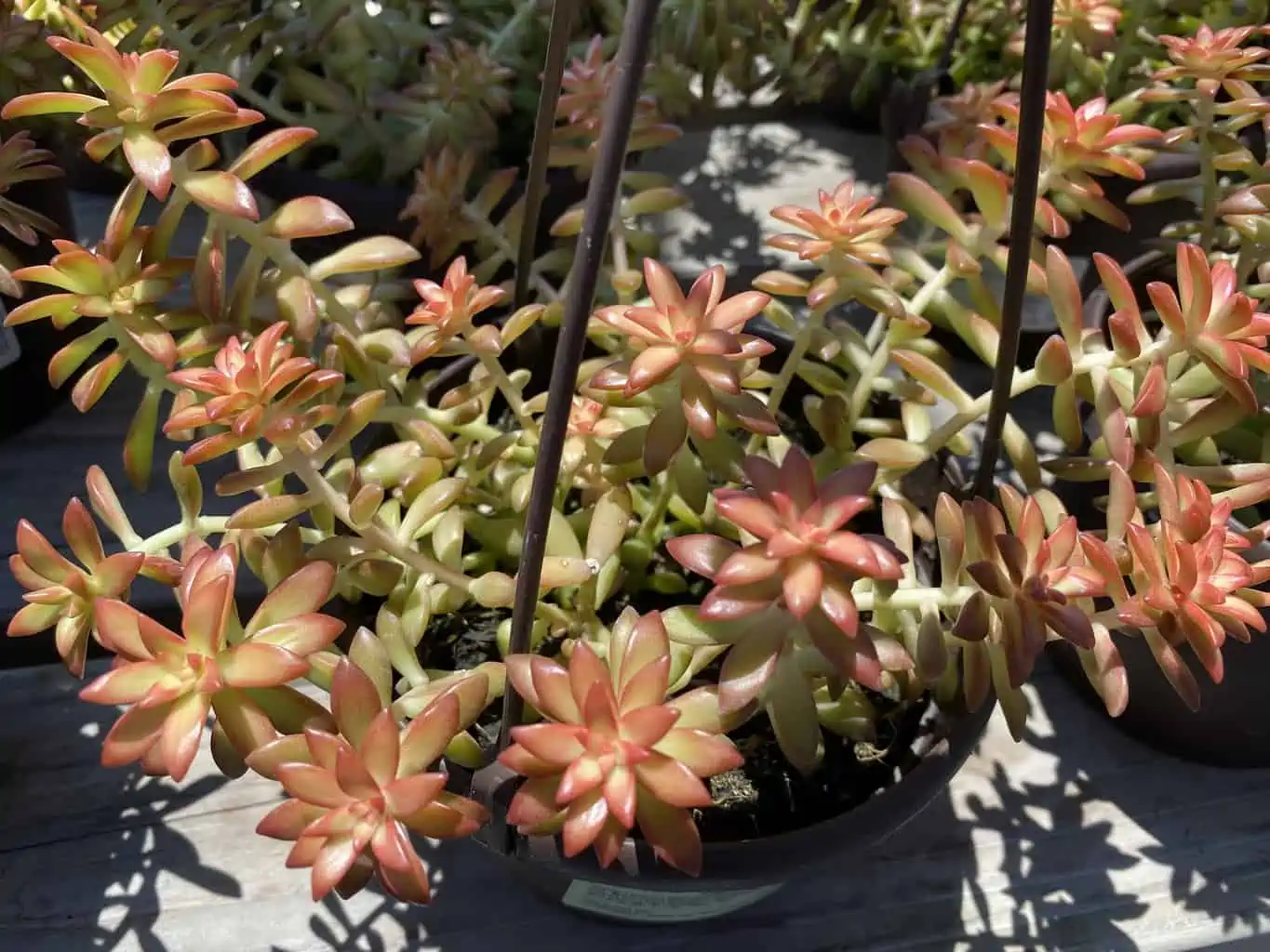 The Succulent Plant Mature Sedum Adolphi ‘Shooting Star’ is beautiful and very colorful, star shaped succulent. This sedum has rosettes of bright star-shaped glowing golden, deep orange and red leaves. It is a bright and attractive filler type of succulent plant. It is a multi-stem pot, so it includes multiple stems. This succulent is excellent for planters, terrariums or arrangements.