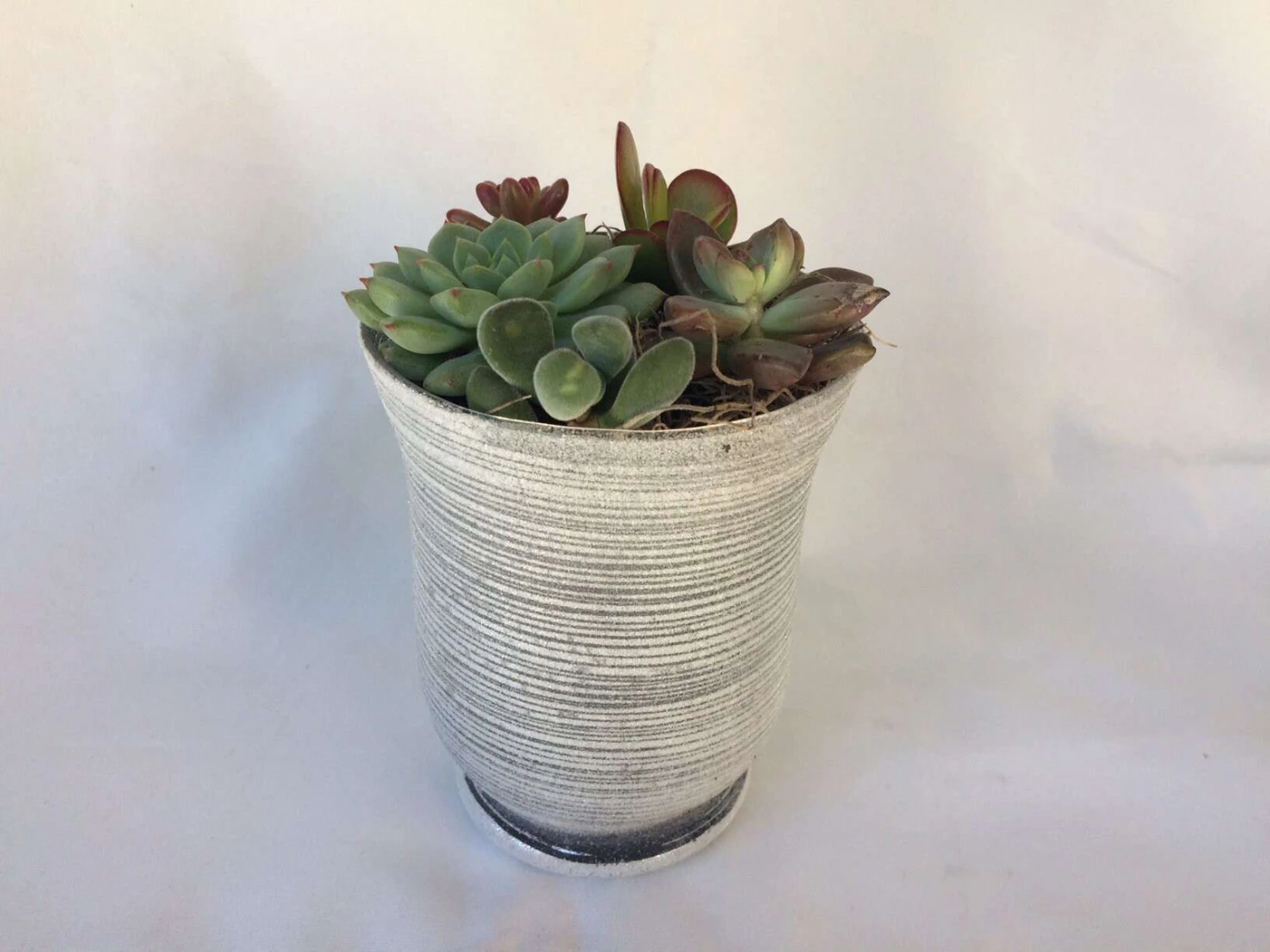 This is a beautiful, completely assembled medium dish garden. This arrangement is a beautiful combination of complimentary colored plants featured in a Silver Frosted Swirl Crystal Planter.nThis dish garden is a wonderful Mother’s Day Gift, housewarming gift, hostess gift, a get well wish, a table centerpiece or a gift to yourself. It comes as shown, or with similar plants, depending on the season and availability. It measures 5.5″ tall with a 3’5″ diameter upper planting opening. These dish gardens are unique as they come as shown and no assembly is required. It is already complete, for you to enjoy! If this is being sent as a gift, please include whatever greeting or message you would like enclosed. A complete care sheet will be included. If you are ordering with temperatures of 34 degrees or less, please consider ordering a heat pack. You will receive one complete Silver Frosted Swirl Crystal Planter fully assembled. It will be carefully wrapped for shipping and shipped via USPS Priority Mail. Please allow 7 days from placing your order for shipment.