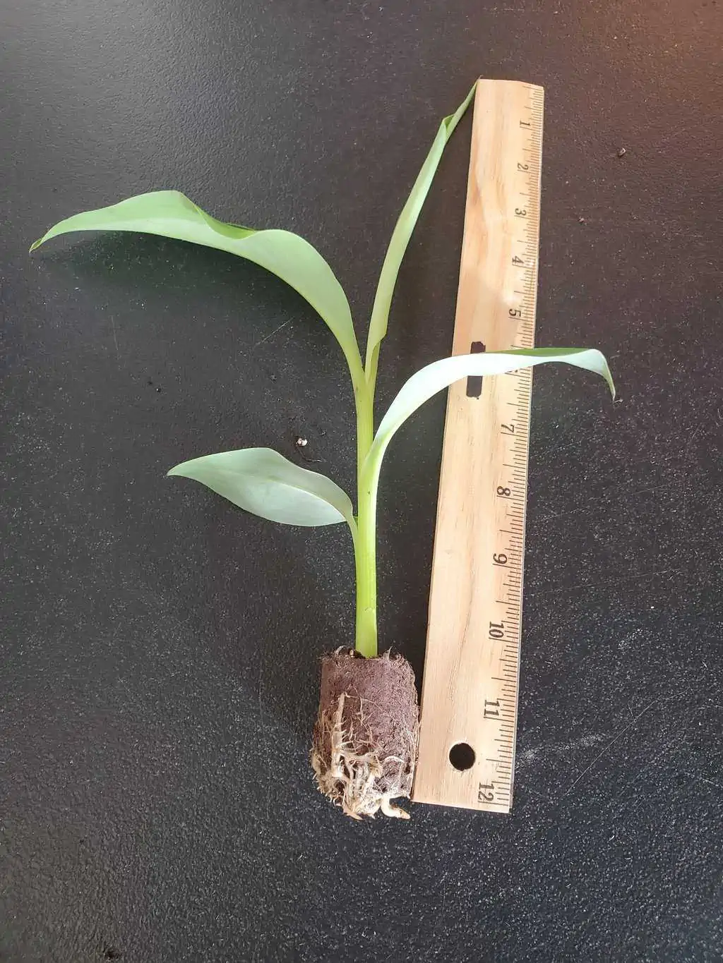The rare ‘Ice Cream’ banana is highly regarded as one of the best tasting. This Blue Java banana has slight hints of vanilla ice cream flavor and a creamy texture. ‘Ice Cream’ is also known by the name ‘Blue Java’ in some parts of the world. It is also called ‘Blue Java’ because of the blueish-green skinned fruit. PLANT IS WELL ROOTED 2-4 INCHES FROM SOIL TO TOP OF LEAF. THESE plants are tissue culture liner produced through tissue culture. Blue Java banana plants need regular deep watering.