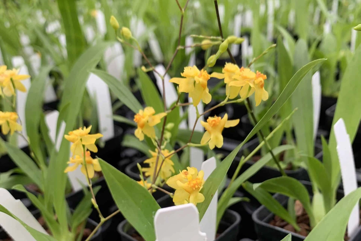 Oncidium Twinkle ‘Yellow Bird’ is a compact grower with abundant sprays of delicate Fragrant Yellow flowers. They Come in a 2″ Pot. This orchid is perfect for the entry-level collector who doesn’t have a bunch of space for their collection — easy to care for and out of the ordinary! Oncidium Twinkle has a vigorous growth habit – most of our orchids are double and triple spiking!