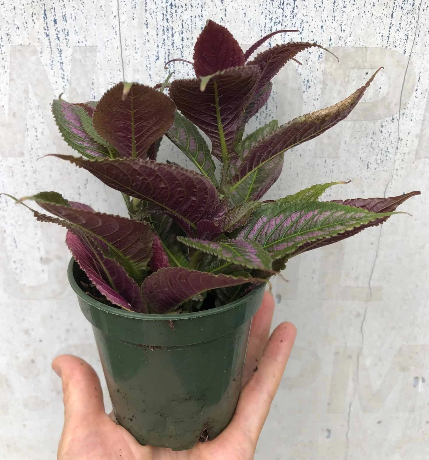 Live Persian Shield Plant, Strobilanthes dyerianus live plant, royal purple plant. You will receive 1 live plant in a container 4″ tall with soil. Well rooted plants. Can grow as a house plant.