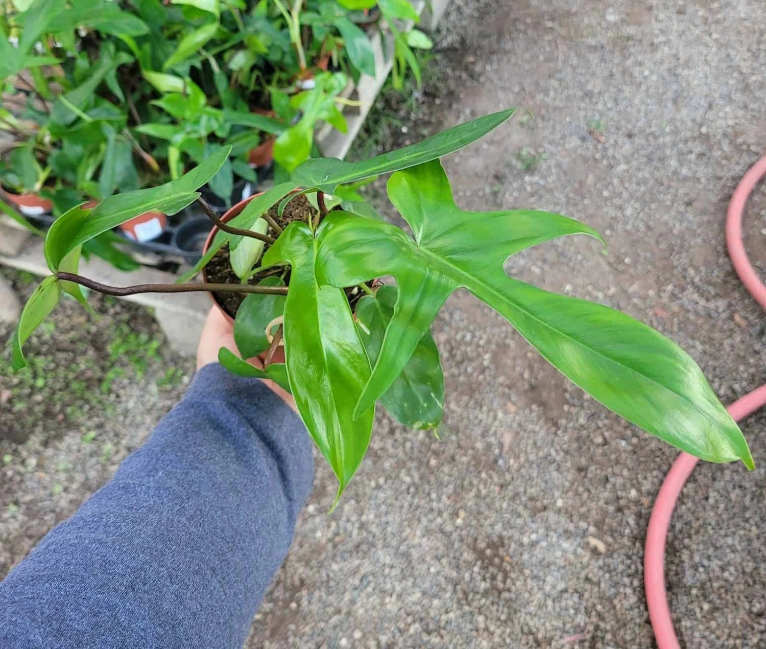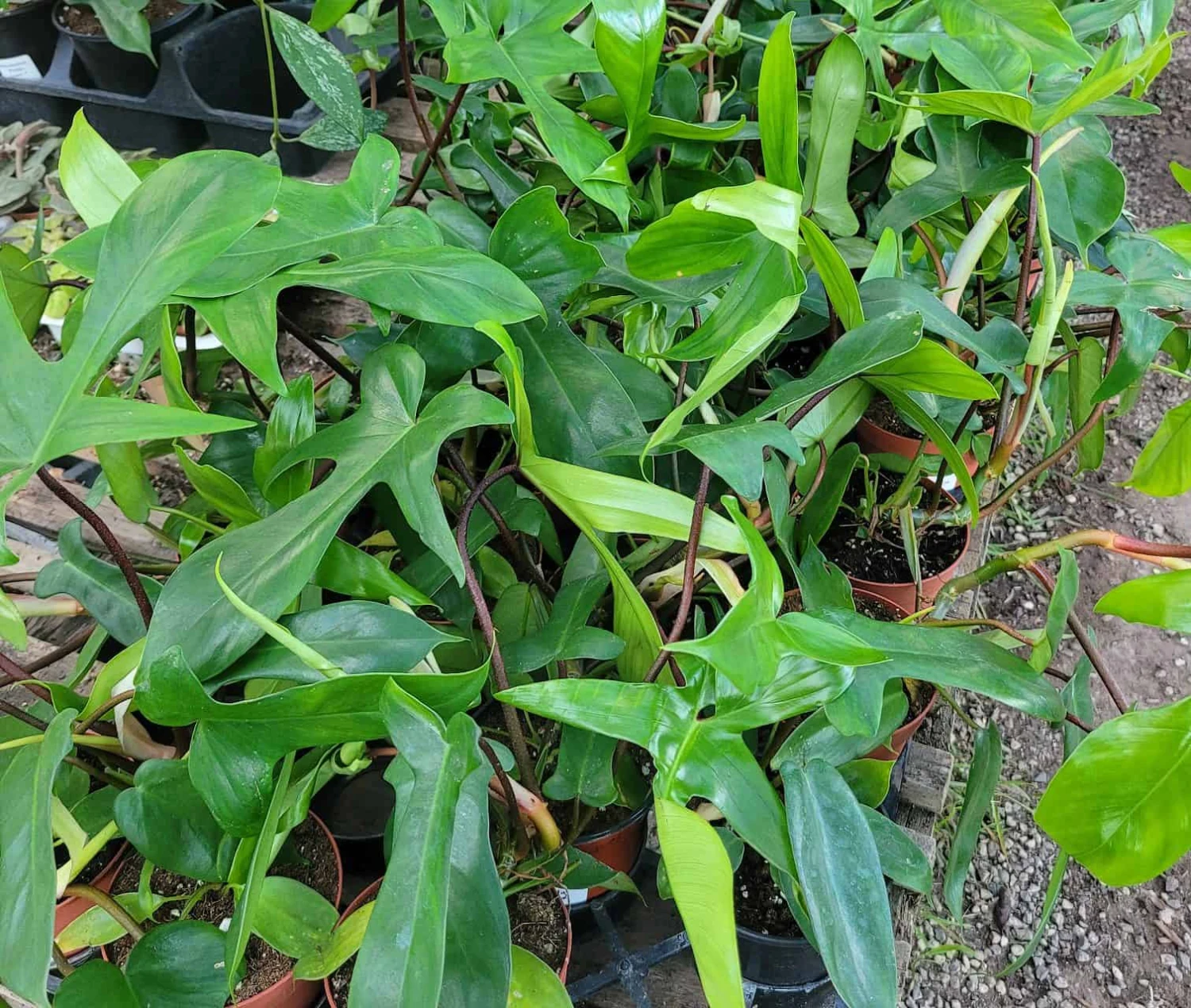 The Philodendron Florida ‘Green’ is a cross between Squamiferum and Pedatum. It has smooth green petioles and green leaves, as opposed to Florida’s ‘Ghost,’ which has light emergent leaves and red bumpy petioles.