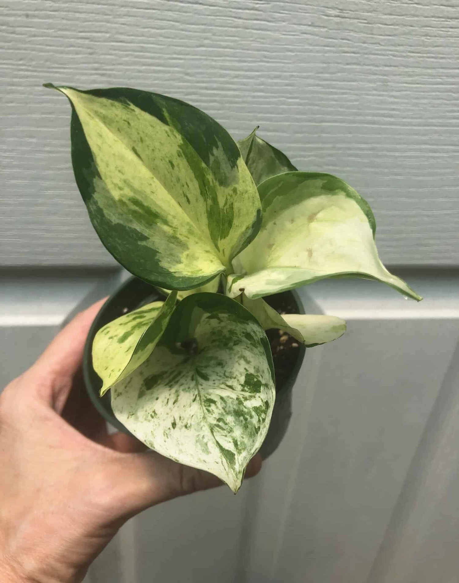 The Manjula pothos is a beautiful pothos with multiple shades of green and white variegation.