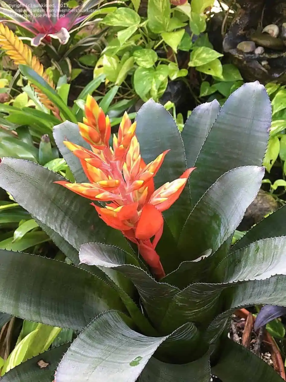 Organic chem-free Bromeliad Red Brazil puts on a great show. We sell a starter plant to you but as long as you keep the plant warm and meet its needs it will grow over 3ft. It will give off many babies too. These are common in South America everywhere and now you can bring the tropic to you. They require a sandy moist soil and misting. Full indoor sun and temps ranging from 70-100 degrees. They love plant food every 6 months. They make wonderful container plants but like to be alone. We have ours in a grouping off our patio and no other plants too close. They require light to moderate watering. If planting outside they need part sun or afternoon sun at least. We do not ship plastic pots. These pots are harmful to our planet and fill up landfills. They pollute roads, waterways, meadows, parks and yards. Your plant will arrive in a biodegradable florist wrap.