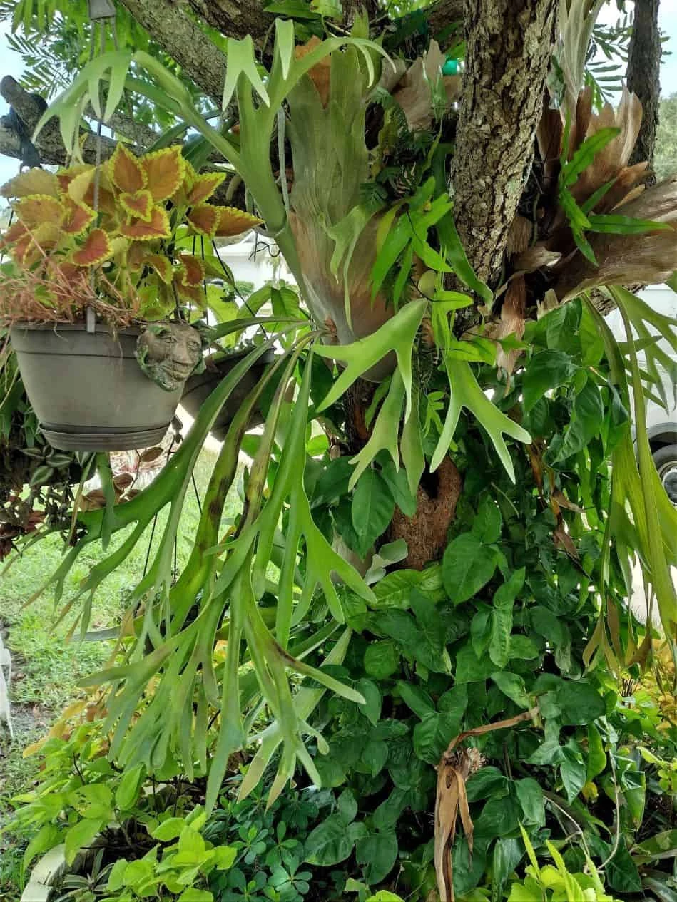 Offer is for 0ne (1) 8″ base fern for you to mount. Staghorn fern thrives in Florida’s heat and humidity; it grows quite well in South Florida and can be grown in North and Central Florida if protected from frosts and freezes. Folks in Northern states grow them on wood plaques, hanging moss balls or a stone inside their cabins and homes. In the Summer they are placed outside on a porch or barn for display. With its beautiful and unusual foliage, staghorn fern is found throughout much of the tropical world. Staghorn fern is a member of the Polypodiaceae family; there are presently eighteen known species, as well as many varieties and hybrids of this plant. This plant is an epiphyte, meaning it gets moisture and nutrients from the air. Staghorn is found growing harmlessly on tree trunks, branches, or even rocks. NO SOIL NEEDED. Keep from direct sun and mist once a week. Gar-Zen Botanical Designs is located in South Florida and is a Black minority women owned business. We grow organic plants only. We do not ship plants in plastic pots which we are trying to ban in Florida. Your plant arrives in biodegradable florist wrap.