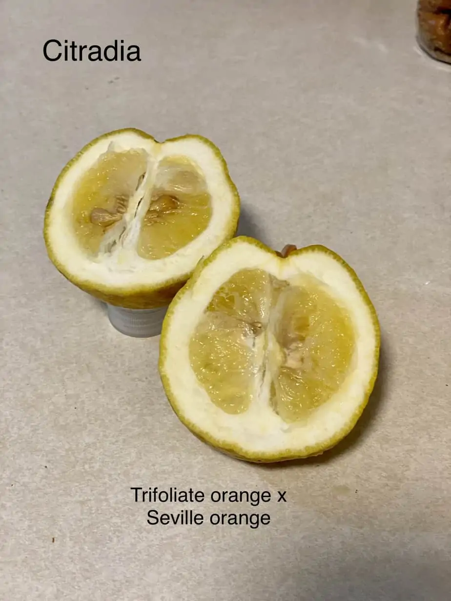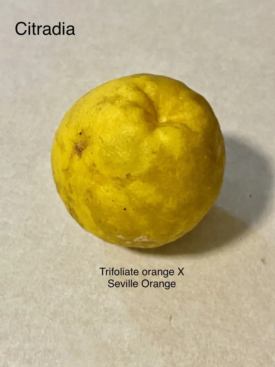 Swingle Citrumelo is a cross of grapefruit and trifoliate orange. Citrumelos have trifoliate leaves and look very much like grapefruit. They combine the cold hardiness of both parents are said to be more vigorous and in some cases hardier than either one. They combine the cold hardiness of both parents are said to be more vigorous than either one. Fully capable of growing in 7a and you can find mature trees at gardens in Raleigh, NC.